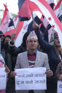 निर्वाचन आयोगको निर्णयलाई अवैधानिक भन्दै देउवा पक्षधर नेताहरू सडकमा