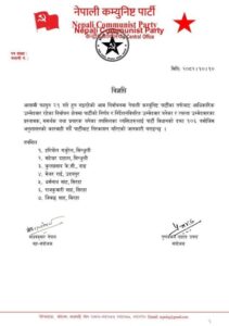 पार्टीको निर्णय र निर्देशनविपरित उम्मेदवार बनेका र त्यस्ता उम्मेदवारका प्रस्तावक, समर्थक तथा प्रचारक बनेका कार अनुशासनको कारवाही गर्दै पार्टीबाट निस्कासन गरिएको नेकपाले जनाएको छ ।