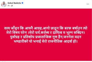 ओलीको पछिल्लो अभिव्यक्तिप्रति गोकुल बास्कोटाको असन्तुष्टि