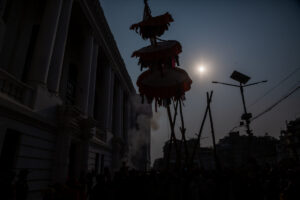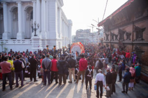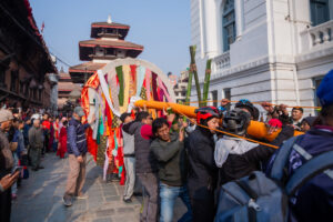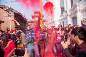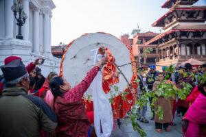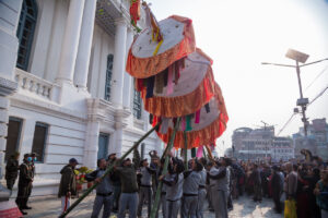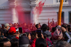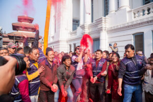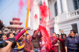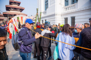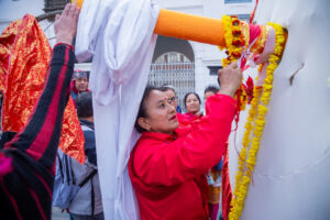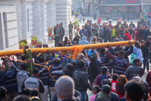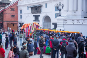 आजबाट होली शुरु भएसँगै हनुमानढोकामा तीनतले चीर ठड्याइयो (तस्बिरहरु)